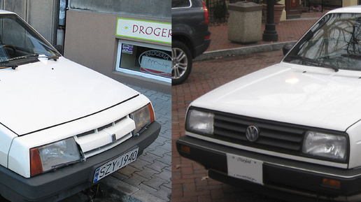 Эти две машины в свое время были очень популярны. Они появились практически одновременно и обладали схожими размерами и конструкцией. Знаменитый VW Golf II, имя которого дало название целому классу автомобиля, и советский ВАЗ 2108...