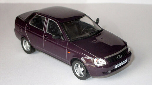 ВАЗ-2170 «Приора» (она же Lada Priora) безусловно является культовым автомобилем России. Ведь далеко каждому автомобилю посвящают песни. Масштабная копия Приоры в том самом легендарном цвете баклажан вышла в журнальной серии «Автолегенды. Новая эпоха. На дорогах России» под № 11 в 2022 году. Модель представляет собой ранний вариант, внешне отличающийся оригинальными бамперами и облицовкой радиатора, а также дверными ручками, аналогичными ВАЗ-2110. Увы, при разработке модели были допущены обидные оплошности...