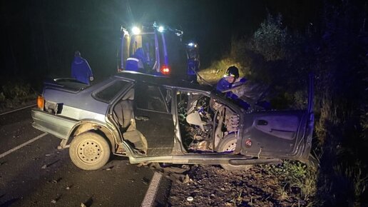 В 4:15 21 сентября в службу спасения сообщили о лобовом столкновении автомобилей — «Фольксвагена Таурег» и «ВАЗ 2115». Люди оказались зажаты в машинах. Прибыв на место, спасатели обнаружили, что водитель и пассажир «ВАЗ 2115» не проявляют признаков жизни, а водитель оказался зажат в смятом салоне. В ходе обследования места ДТП, в 50 метрах от дороги в лесу был найден мужчина с множественными травмами, который находился в сознании и, предположительно, является водителем иномарки...