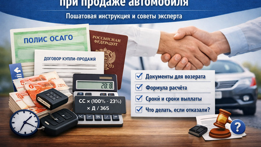 Как вернуть деньги за ОСАГО при продаже автомобиля: пошаговая инструкция, формула расчёта и советы эксперта. Подробная инструкция для водителей в России о возврате части уплаченной премии по ОСАГО после продажи автомобиля: основания, список документов, формула расчёта с примером и практические рекомендации.