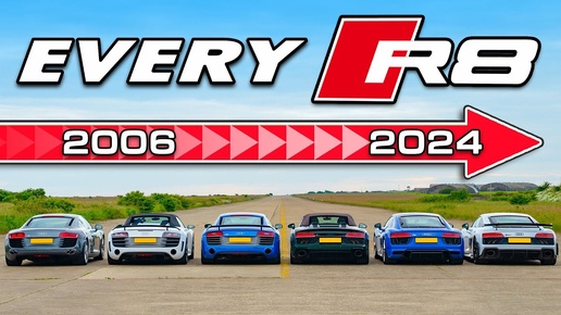 Авторы YouTube-канала Carwow устроили сражение с участием сразу шести вариантов модели Audi R8, которая уже сошла со сцены. Чтобы отдать дань уважения знакового немецкого спорткара, в заезде по прямой свели R8 V8, GT Spyder и LMX первого поколения, а также R8 RWS, R8 Spyder Performance и R8 GT второй генерации. Машины отличаются своими характеристиками даже внутри одного поколения, что делает такое сражение весьма интересным и непредсказуемым. Оригинальное купе оснащалось 4,2-литровым атмосферным V8 на 414 сил и 430 Нм в сочетании с 6-ступенчатой механической коробкой передач и полным приводом...