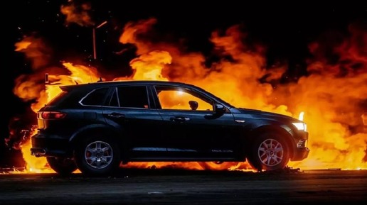 Полыхающий Mercedes-Benz сняли на видео на левом берегу Воронежа