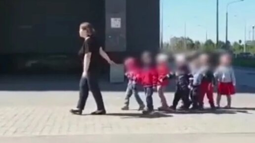 Строгий режим? Горожан возмутила воспитательница, выгуливающая малышей на привязи