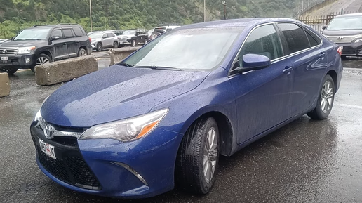 Всех приветствую на своем канале, и сегодня к нам на обзор подъехала Toyota Camry в 55 кузове. Это у нас чистый 2017 год, движок здесь стоит бензиновый на 2.5 литра не гибрид. По внешнему виду: тут у нас ДХО, линзованная оптика, свет стоит галогеновый, но я бы поставил ксенон на 5000. Резина очень хорошая, протектор очень хороший при пробеге около 30 000 километров. Сзади парктроников тут нет, но есть камера заднего вида. Она расположена над номерным знаком. Багажник открывается с кнопки из салона, которая находится под водительским сиденьем...