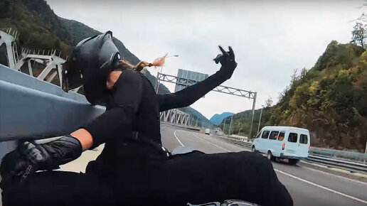 Понты редко доводят до добра. А особенно, когда они не подкреплены заботой о собственной безопасности. Инцидент, представленный на видео, произошел в начале ноября. Мотоциклистка по имени Дарья в компании еще нескольких байкеров двигалась по шоссе с высокой скоростью, при этом из экипировки на ней были только шлем и перчатки.   В какой-то момент девушка не вписалась в поворот, задела боком железное ограждение и вылетела из седла, оставшись на дороге. Развернуло ее так, что смотреть этот момент страшно...