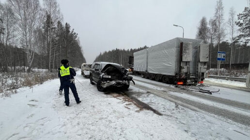 На трассе Екатеринбург – Нижний Тагил произошло жёсткое ДТП с участием внедорожника и большегруза. Авария случилась днём 14 декабря: по данным ГИБДД, 47-летний водитель Chevrolet Tahoe, двигаясь в сторону Екатеринбурга, врезался в стоящий на полосе грузовик, перевозивший габаритный груз.