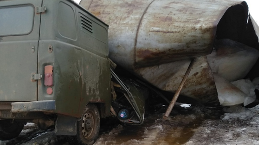 В местных новостях, а потом даже по телевизору, рассказали, как в Тверской области рухнула водонапорная башня. Упала точнёхонько на "Буханку" коммунальщиков. Как говорят люди, работники решили разморозить водонапорную башню обычным костерком...