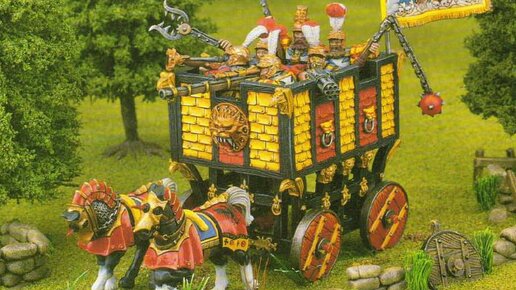 Имперский военный фургон-чрезвычайно тяжелая версия колесницы, мобильной бронированной боевой башни с экипажем из шести воинов, запряженных двумя крепкими боевыми лошадьми. Высокие стены башни защищают ее экипаж от стрел и атак с земли. Обзор Военные фургоны представляют собой подвижную платформу, с которой он либо транспортирует солдат Империи через поле боя или обеспечивает выгодную позицию для подразделений лучников, арбалетчиков и стрелков, чтобы стрелять во врага. Его экипаж также может быть вооружен разнообразным экспериментальным вооружением из арсенала Имперской артиллерийской школы...