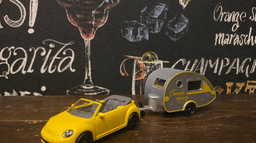 Volkswagen Beetle Cabrio A5 с прицепом караваном от Siku в масштабе 1:55