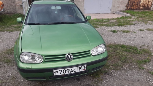 Volkswagen Golf 4 (европеец), в красивом зелёном цвете, 2000 года выпуска. Двигатель 1.6 16V бензин (мощность 77 кВт, 102 л. с.). МКПП. Передний привод. Пробег - 182 000км. Диски R14. Комплекты новой летней и новой зимней шипованной резины на дисках. 2 ключа. В салоне не курили, он чистый и ухоженный. В 2016 году автомобиль пригнан из Литвы и с тех пор в одной семье...
