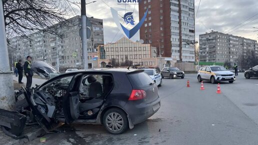 Жесткое ДТП в Чебоксарах: Volkswagen Golf на скорости влетел в столб