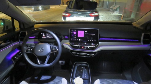 Привет, уважаемая публика! Ещё в январе мне удалось полдня поколесить по Москве на электромобиле VW ID.6 Crozz. Ниже поделюсь своими впечатлениями и выводами после этого своеобразного тест-драйва. Для начала пару слов о характеристиках конкретно того автомобиля, на котором я катался: Возможно, на фотографиях ID.6 не кажется настолько крупным, как в реальности. На самом же деле, машина действительно длинная, широкая, высокая. Длина модели - 4891 мм, ширина - 1848 мм, колёсная база: 2965 мм - это очень немало! Второй ряд здесь можно двигать вперёд-назад, причём - по частям...