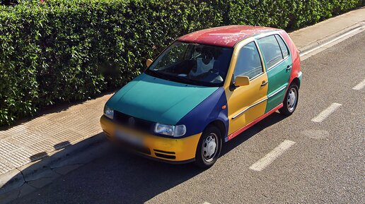 Хорошо, хорошо, водительская дверь немного помята, крыше облезает, но вся краска точно заводская. Ведь это редкий Поло Арлекин. Есть мнение, что создавая Арлекина, компания Фольксваген вдохновлялась своей же рекламой из 60-х годов. На том плакате был показан разноцветный Жук, кузовные панели которого были от моделей разных модельных годов. Именно поэтому они все были разного цвета. Но это мнение ошибочно. Всё было вовсе по-другому А как было на самом деле? Одной из фишек Поло 3-го поколения были «безграничные» возможности по кастомизации...
