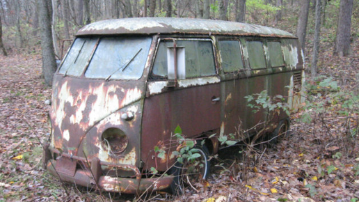 Глубоко в лесу северо-западной Пенсильвании, недалеко от городка Страттанвилл нашли этот заброшенный автобус Volkswagen модель 1960 года. И сюда по всему, в эту чащобу он даже заехал своим ходом, лет 40 назад! Задняя дверь отсутствует или специально удалена, что конечно не лучшим образом сказалось на внутренней сохранности, что позволило непогоде и всякой живностью попасть внутрь. Может показаться, что автобус выглядит неплохо, даже в таком ракурсе. Но обратите внимание на стыковку крыши и боковой панели, котоаря переходит в заднее крыло...