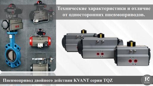 Пневмопривод двойного действия KVANT серии TQZ: технические характеристики и отличие от односторонних пневмоприводов.