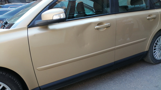 У нас на ремонте вмятин без покраски по технологии PDR Вольво. Вмятины на двери заметно портят вид автомобиля. Площадь повреждения достаточно велика