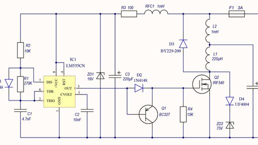 Всем здравствуйте. Эта достаточно простая схема предназначена как один из вариантов продления срока службы свинцово-кислотных аккумуляторов. Схема питается от самой батареи (или от зарядного устройства) и «разряжает» батарею серией высоковольтных импульсов. До сих пор ведется много споров о том, можно ли обратить вспять сульфатацию батареи и, следовательно, об эффективности импульсных восстанавливающих устройств. Приведенная схема простая, конечно, не тестировалась в широком диапазоне различных аккумуляторов,...