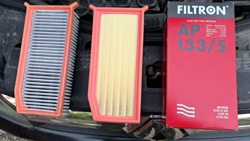 Всегда ставил на двигатель своего Дастера оригинальный воздушный фильтр 165467674R, но в последнее время цены на него стали кусачими, а подделок развелось очень много. В этот раз поставил воздушный фильтр FILTRON AP133/5, стоит в три раза дешевле оригинального. Фильтр понравился, качественный, на двухлитровый двигатель F4R сел плотно. Фильтрующий элемент у него отличается от оригинального: на оригинальном фильтре фильтрующий элемент похож на ворсистый, воздух через него проходит более легче, на FILTRON AP133/5 — бумажный, площадь фильтрации намного больше, чем у оригинального...