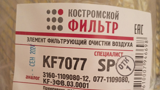 #нереклама #импортозамещение Использую фильтры двух отечественных производителей. На фото костромской фильтр. Есть ещё Ливны. Собственно они выпускают фильтры для самого разного транспорта, в т.ч. иномарок...
