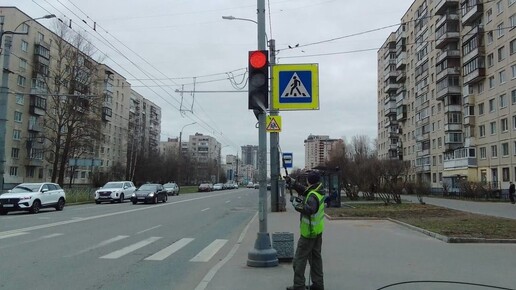 В Петербурге приступили к весенней чистке дорожных знаков и светофоров