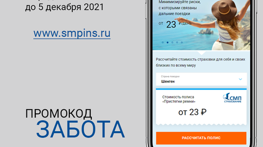 Наша чёрная пятница начинается 24 ноября и продлится до 5 декабря 2021! Дарим вам промокод ЗАБОТА для наших онлайн-продуктов www.smpins.ru по защите квартиры(продукт «Защита квартиры»), здоровья(продукт «Особый случай»), работы(продукт «Защита дохода») и путешествий(продукт «Пристегни ремни»)...