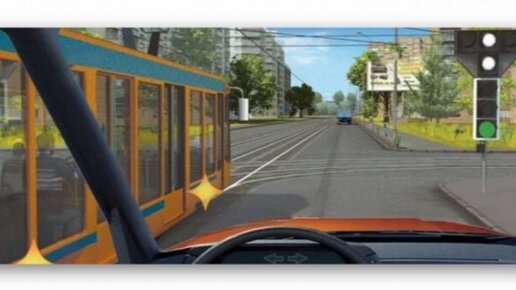 уступить трамваю?». Варианты ответов: Внимательно рассмотрите предложенную картинку и