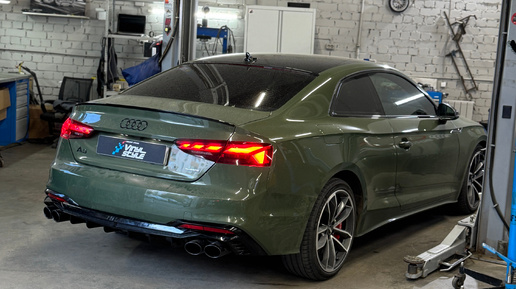 На Audi A5 заменили задний диффузор, установили насадки и сделали управляемый выхлоп на заслонке. Управляется с пульта.