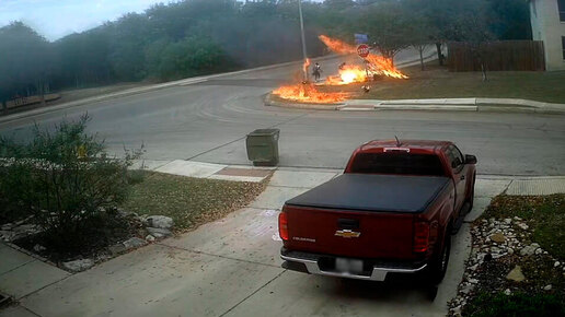 В американском Сан-Антонио мотоцикл на ходу вылетел с дороги, вспыхнул и едва не задел школьников, стоявших на углу жилой улицы. Об этом 6 апреля сообщает New York Post. По данным издания, авария произошла около 16:30 2 апреля. На записи видно, как двое детей с рюкзаками стоят у перекрестка, когда мотоцикл вместе с водителем начинает скользить по асфальту. После удара о бордюр байк взрывается, и рядом с детьми поднимается огненный шар...
