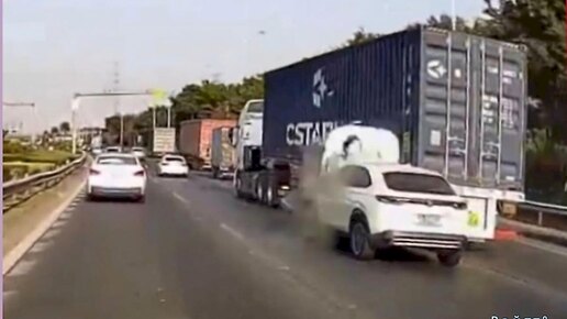 Участник дорожного движения запечатлел взрыв колеса у грузовика, случившийся недалеко от китайского аэропорта Гуанчжоу Байюнь. Со слов автора полученной Рай77° видеозаписи, неопытный автомобилист стал виновником ДТП, в котором сильно пострадало его транспортное средство. Легковушка повредила заднее колесо фуры, после чего произошёл мощный взрыв, сильно деформировавший переднюю часть автомобиля...
