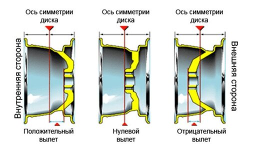 👉 Есть такой девайс – колесные проставки. Он устанавливается на ступицу и позволяет установить нештатные диски с нештатным же вылетом. С помощью них можно сделать шире колесную базу, увеличить выворот этих самых колес и изменить сверловку дисков. Но обо всем по порядку. Что такое вылет? Вылет, или Eipress Tief(ET), измеряется в миллиметрах и обозначает вылет диска по отношению к ступице. Вылет бывает положительный и отрицательный. Если провести линию по центру диска, то это будет нулевой вылет...