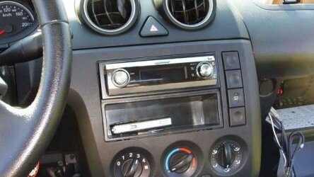 Будем менять стандартную магнитолу на автомобиле Форд Фиеста. В первую очередь требуется удалить панель, которая расположена под педальным узлом. Здесь нам придется отвернуть болты крепления, которые мы наблюдаем, оставляем только два, находящиеся за откидным ящиком, в левой части рулевого колеса. Потом вскрываем бардачок, убираем там все лишнее, надавливаем на фиксаторы, которые выступают с боков бардачка и опрокидываем его. Отворачиваем винты крепления панели, вытаскиваем наружу панель с кнопками...