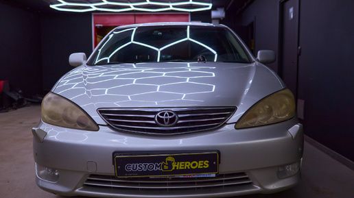 В нашу мастерскую заехала знакомая многим машина — Toyota Camry тридцатого поколения после рестайлинга. Машина 2004 года, но по состоянию кузова и салона видно, что владелец за ней ухаживает. Camry вообще из тех автомобилей, что могут без проблем пережить не один десяток лет, если уделять им внимание. Но есть одна вещь, которая всегда выдаёт возраст даже у самых ухоженных машин, — это фары. С чем приехала машина Хозяин жаловался на тусклый свет и непривлекательный внешний вид оптики. Стёкла фар были мутные, в мелких царапинах, и это сразу бросалось в глаза...