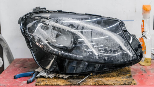 Замена стекла фары мерседес 221 рестайлинг #www.Razborcar.ru #ремонтфар #ремонтфармосква