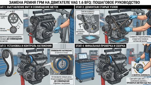 Полное техническое руководство по замене ГРМ на двигателе 1.6 VAG (BFQ, BSE, AKL) ⚙️🚗