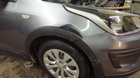 Наш постоянный клиент "Киа Рио Х — лайн" опять попал в неприятную ситуацию. Помяли машине переднее крылышко. Будем выполнять ремонт с сохранением краски. Потихонечку выравниваем металл. Разравниваем неровности изнутри и снаружи. И вот уже крыло выглядит намного лучше! Точечно подкрашиваем сколы краски, которые были на верхней складке, что б не ржавели. Собираем всё в обратном порядке...