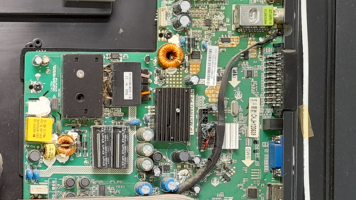 Всем здравствуйте! Сегодня у нас на ремонте телевизор Fusion fltv-32l28b с диагнозом от клиента - не включается. По факту-же была неисправна подсветка. При включении светодиод "переходил" из красного в зелёный , на пульт реакция есть, но звука и изображения нет. Итак посмотрим что у него внутри. Не так уж всего много. Майн плата tp.ms18vg.p83c Решил проверить драйвер подсветки, дабы убедиться в неисправности линеек подсветки. Замерил напряжение на разъёмах подсветки. В дежурном режиме 19 вольт, а при включении появляется всплеск до 28 вольт и падение до 19...