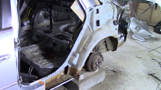 В ремонте автомобиль Hyundai Grandeur ,требуется замена заднего крыла. Крыло можно было бы и отрихтовать,но оно уже местами подгнившее,так что лучше его поменяем. На замену привезли оригинальное крыло целиком,с такими деталями работать одно удовольствие. Новая деталь идет сразу с нишей под горловину бензобака, вокруг нее сварочных работ проводиться не будет,что удобно. Начинаю разбирать авто.Для хорошего и удобного доступа при ремонте пришлось срезать заднее стекло,форточки,разобрать салон,освободить багажник ...