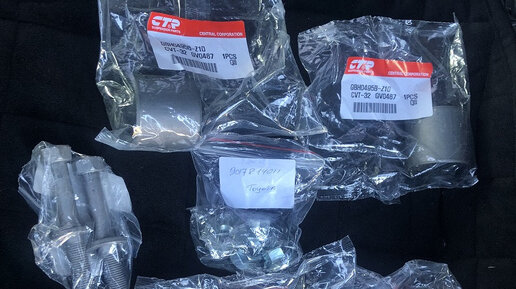 Очередной визит на сервис связан с заменой сайлентблоков продольных рычагов. На замену были выбраны сайленты фирмы CTR 4 шт. (артикул CVT32), в придачу к ним болты (артикул 9011914118) и гайки (артикул 9011914118) из-за опасения, что старые придется срезать. Болты на удивление открутились без особых танцев с бубнами...