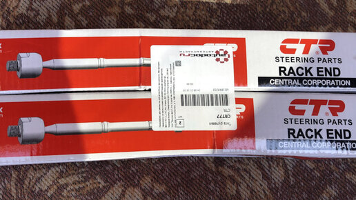 Заменил обе рулевые тяги. Если левая ещё была в более менее нормальном состоянии, то правая конкретно болталась. На трассе машина не стабильно двигалась по прямой и это напрягало, приходилось все время подруливать. Как и у большинства прадоводов, выбор пал на корейскую фирму CTR. Вышли по цене в 937р. за штуку, каталожный номер CRT77. После замены сделали регулировку углов установки колес. Автомобиль в управлении стал более сбитый, ушли рыскания по трассе, идёт по прямой как влитой. Теперь по кондиционеру...