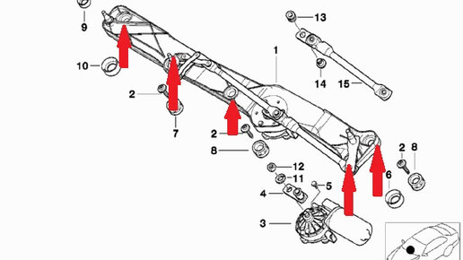 Замена тяги стеклоочистителя водительской стороны BMW 5 E39
