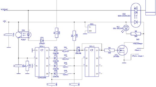 Назначение В литературе и на радиолюбительских ресурсах в сети приведено немало различных схем регуляторов мощности, от простых на одном тиристоре до довольно сложных, с микроконтроллерным управлением. Однако в подавляющем большинстве конструкций таких регуляторов используется фазовый метод управления выходными тиристорами, поэтому они неизбежно создают импульсные помехи, интенсивность которых возрастает с увеличением мощности нагрузки. Для управления нагрузкой, обладающей значительной инерционностью,...