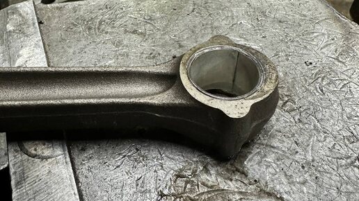 Замена втулок шатунов. Ремонт ВГШ (Верхняя Головка Шатуна). Выполняем ремонт шатуна, после промера выявлено, что зазор от пальца слишком большой (на легковых авто до 0,01 норма, если больше, то в ремонт). Фото 1. ДО. Родная втулка на месте. Фото 2. Выбили втулки. Фото 3. Забиваем новую втулку. Обычно либо молотком, либо задавливаем в тисках...