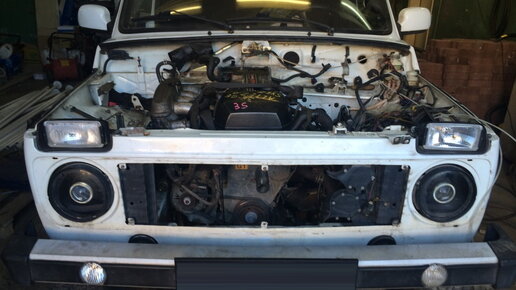 Древний 8-клапанный 1.7 литровый мотор Лада 4х4 давно перестал вписываться в динамичную жизнь современных автолюбителей. Чуть более 80 лошадиных сил и довольно большой расход топлива. Но сам "Автоваз" в этом направлении работать не готов. Поэтому умельцы в гаражах решают проблему своими мозолистыми руками. Сегодня расскажем о комплексной переделке Нивы под более мощный силовой агрегат. Для начала работ был куплен двигатель Toyota 3S-GE пятого поколения, который с 2-литров объема выдает 210 лошадиных сил! Естественно к силовому агрегату прилагалась механическая коробка от той же Тойоты...