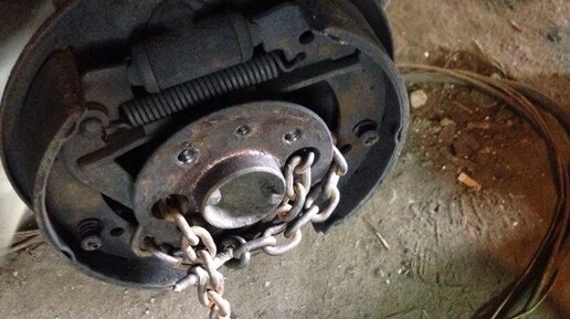 Сначала снимаем колесо и барабан и откручиваем 4 гайки крепления полуоси, тут всё как обычно...