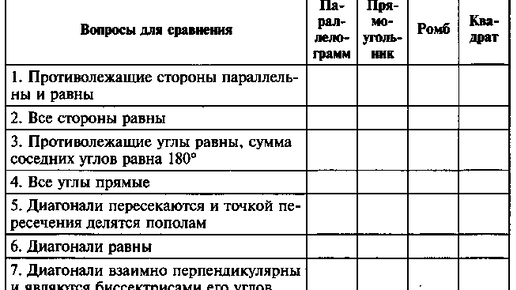 СпецКурс1 год назадПодписатьсяГ8 ДЗ Прямоугольник, ромб, квадрат-2Заполните таблицу, отметив знаки «+» и «-» нет