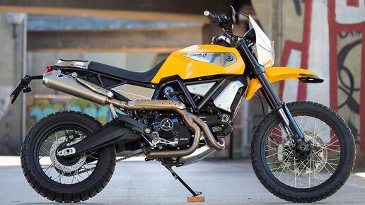 DUCATI SCRAMBLER Семейство Ducati Scrambler оказалось настолько популярным и своевременным, что итальянцы даже объявили его саб-брендом и создали в рамках него довольно обширную линейку из более или менее удачных моделей. Одним из самых интересных и весёлых Scrambler-ов, соответствующих своему громкому имени, оказался вариант Desert Sled, действительно отлично подходящий для езды по пустыням. А наиболее дорожным вариантом по праву можно назвать Scrambler 1100 с более-чем-литровым мотором, но практически не оснащённый под бездор...