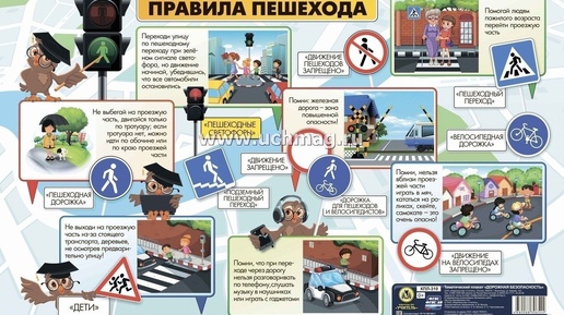Дорожная безопасность. Правила пешехода: Формат А2 Арт. КПЛ-310 ▶https://www.uchmag.ru/estore/e2834499/ Представляем красочный плакат "Дорожная безопасность", который станет прекрасным наглядным пособием для развивающих занятий, рассказывающих детям о знаках дорожного движения, правилах поведения на дороге. Может послужить в качестве декорирования доступных помещений в любой организации с тем, чтобы дети с родителями или школьники самостоятельно знакомились с важными для безопасности и сохранения...