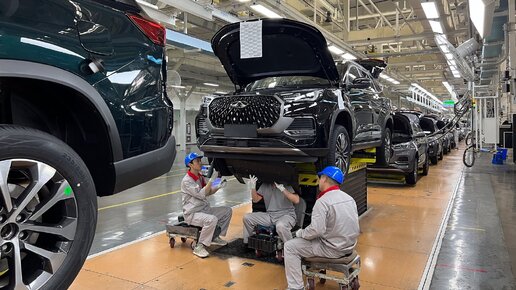 Китайская автомобильная промышленность развивается невероятно быстро. Просто сравните, какими были машины из Поднебесной еще пять лет назад и какими они стали сейчас. Разница просто огромная. Во многом это стало возможным благодаря развитию производственных площадок внутри страны — привлекаются лучшие специалисты, закупается передовое оборудование, меняется подход к организации всех процессов на заводе. Вот лишь небольшой пример того, насколько рьяно китайцы радеют за порядок на заводе. У конвейера установлены специальные конструкции, где рабочие могут хранить свои бутылочки с чаем...