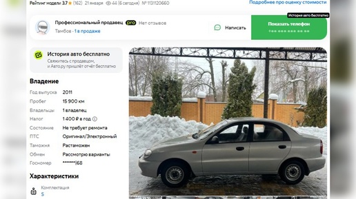 В очередной раз в ходе мониторинга автомобильных агрегаторов корреспонденту "Российской газеты" удалось разыскать весьма заманчивое предложение. Владелец из Тамбова выставил на продажу Zaz Chance 2011 года с пробегом 16 000 км. Хозяин уверяет, что машина находится в состоянии новой, долгое время хранилась в теплом гараже и не покидала стен парковки в зимнее время. Судя по фотографиям из карточки объявления, сомнений в словах автора не возникает абсолютно. Салон, кузов и моторный отсек смотрятся безупречно и создают впечатление, что только вчера этот седан покинул здание автосалона...