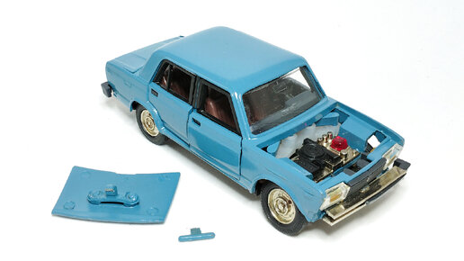 Привет, друзья и гости канала! От моделиста И.С. ко мне на восстановление прибыла очередная партия моделей его юных лет. Одна из них - саратовская модель автомобиля ВАЗ-2105 "Жигули" в масштабе 1:43. Жигулёнок постномерной, окрашен в приятный синий цвет (кстати, очень напоминает цвет старых вагонов метро). ЛКП кузова сохранилось идеально, однако, кое-что пострадало. Проблем у Жигулёнка только две: ❌ сломан кронштейн крепления с нижней части капота; ❌ отломана часть переднего бампера. Если с бампером...